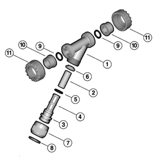 -eingebautes Filternetz mit Maschenabstand 1,5 mm, Verunreinigung ab 0,5 mm trennbar