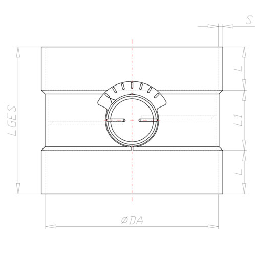 - PP-EL-s Drosselklappe mit Drehknopf, 15° Raster, mit Muffe.