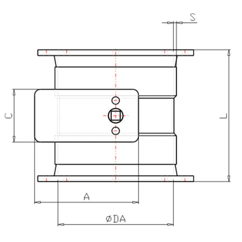 PP-el-s Regelklappe, Motortrageplatte quer, beidseitig Flansch, elektrisch leitfähig
