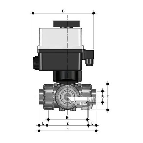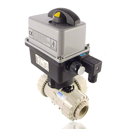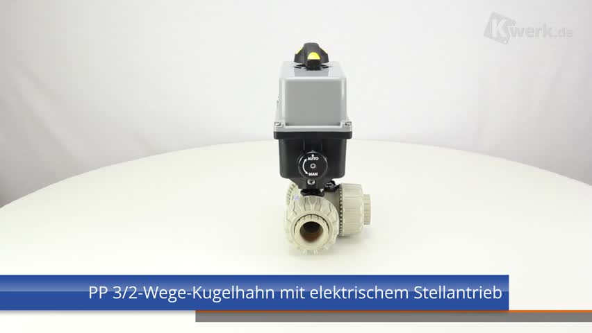 3/2-Wege-Kugelhahn aus PP mit elektrischem Stellantrieb