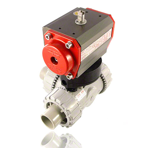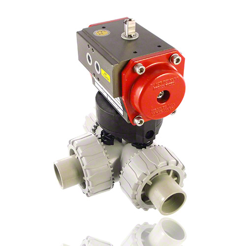 3/2-Wege-Kugelhahn aus PVC-C mit pneumatischem Stellantrieb