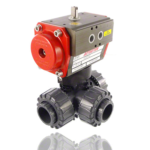 PVC U 3/2-Wege-Kugelhahn , pneumatische Ausführung