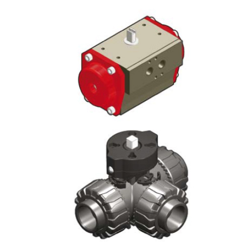 PVC U 3/2-Wege-Kugelhahn , pneumatische Ausführung