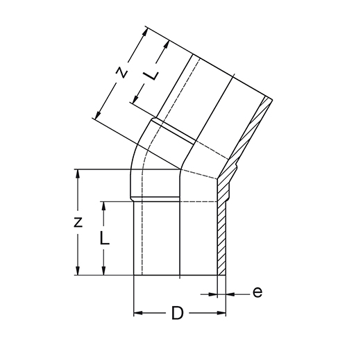 Außendurchmesser und Wanddicke entsprechend EN 1555 und EN 12201. Toleranzen bei den Z-Maßangaben sind abhängig von der Dimension. Bis d/D 160 = +/- 3 mm. Ab d/D 180 = +/- 10 mm.