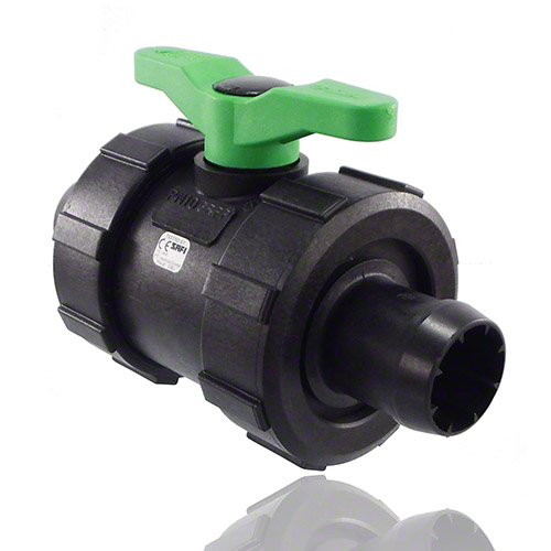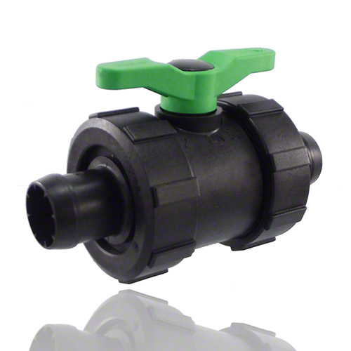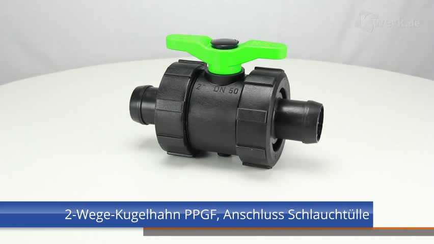 2-Wege-Kugelhahn PPGF, Schlauchtüllen, FPM = grüner Hebel