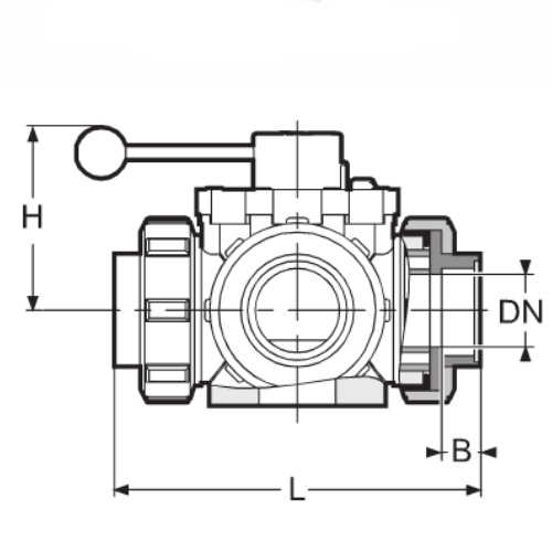 3-Wege-Kugelhahn PPGF DN 50, Flanschanschluss, T-Bohrung, EPDM