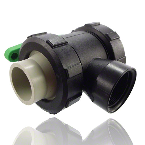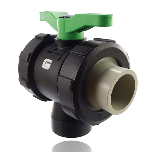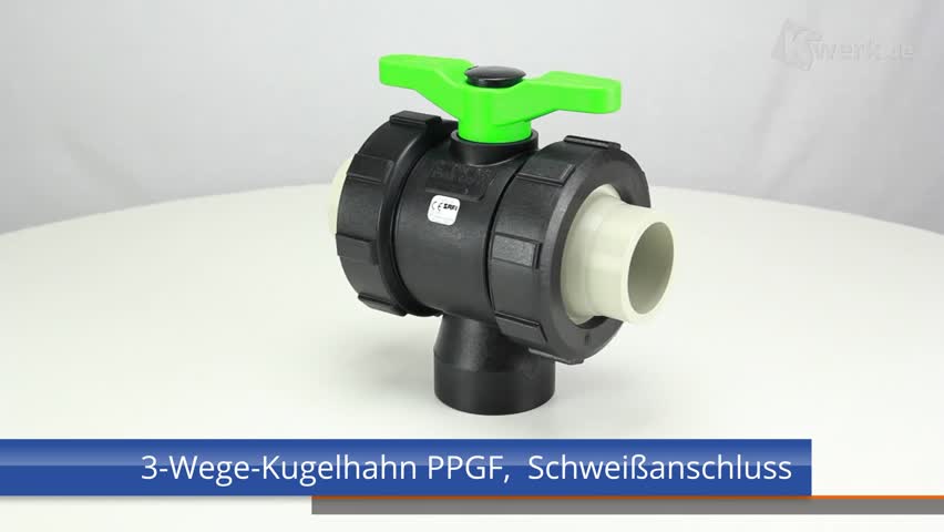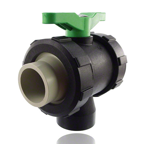3-Wege-Kugelhahn PPGF, PE-Stutzen, FPM  = grüner Hebel