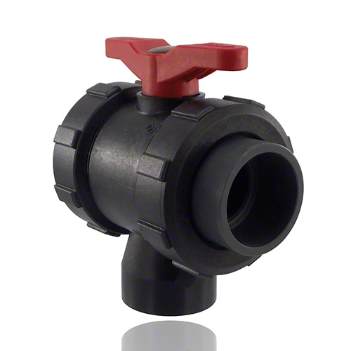 3-Wege-Kugelhahn PPGF, PVC-U-Klebemuffen, EPDM = roter Hebel