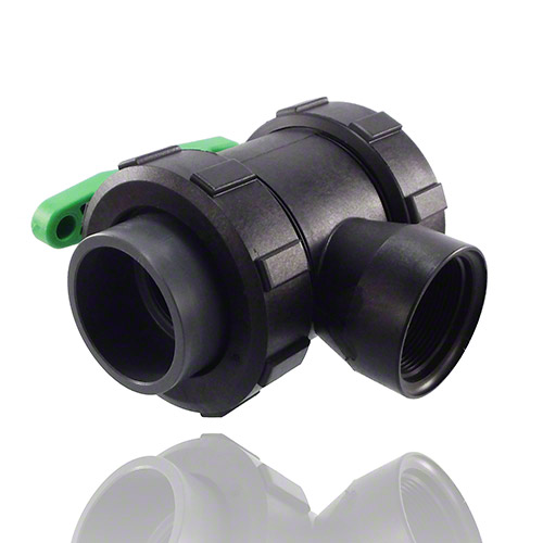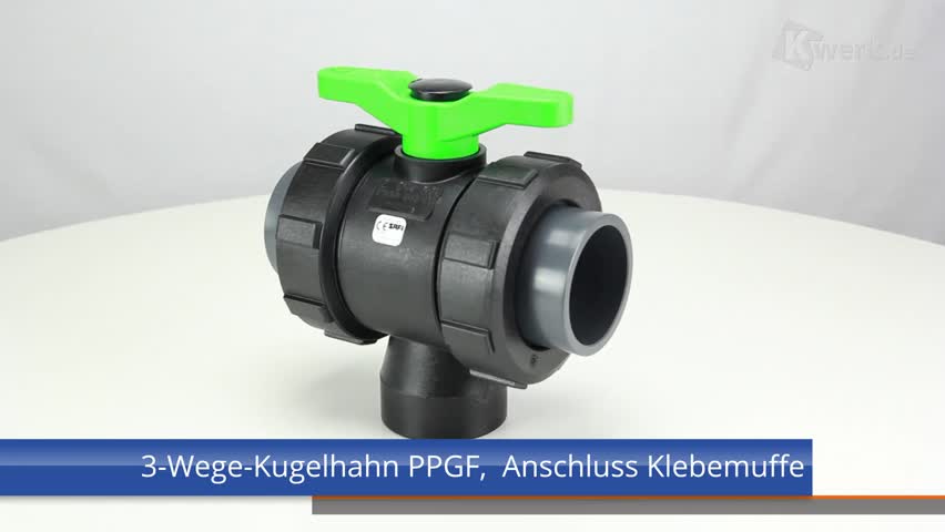 3-Wege-Kugelhahn PPGF, PVC-U-Klebemuffen, FPM = grüner Hebel