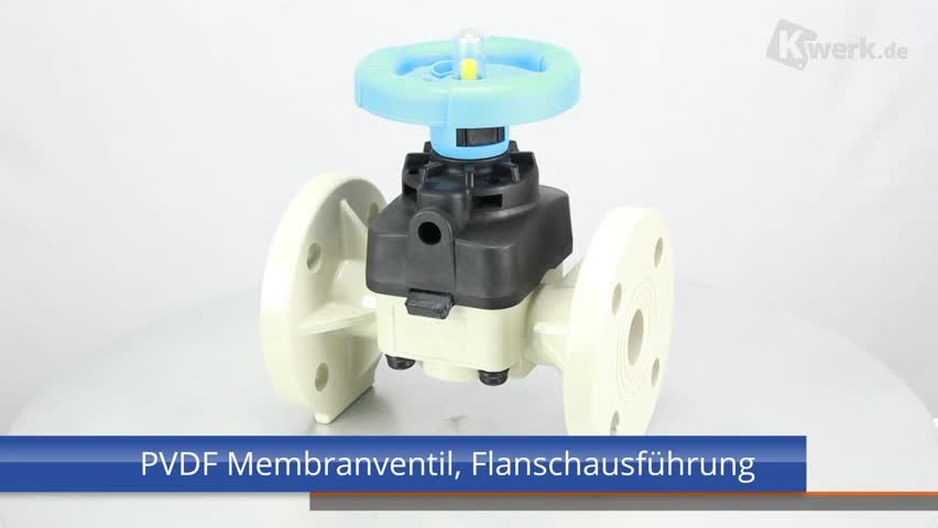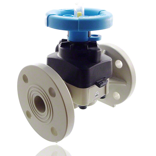 Membranventil PP-H, DIN-Flansche, PTFE = blaues Handrad