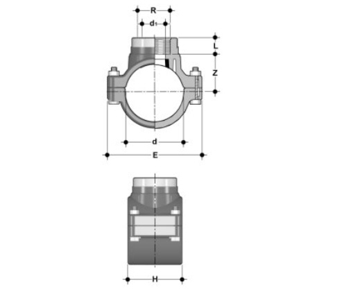 PVC U Anbohrschelle, zylindrisches Innengewinde