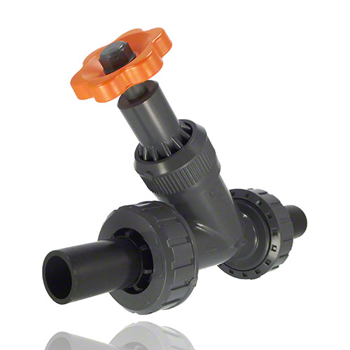 PVC-U Schrägsitzabsperrventil, PE-LS-Stutzen, FPM